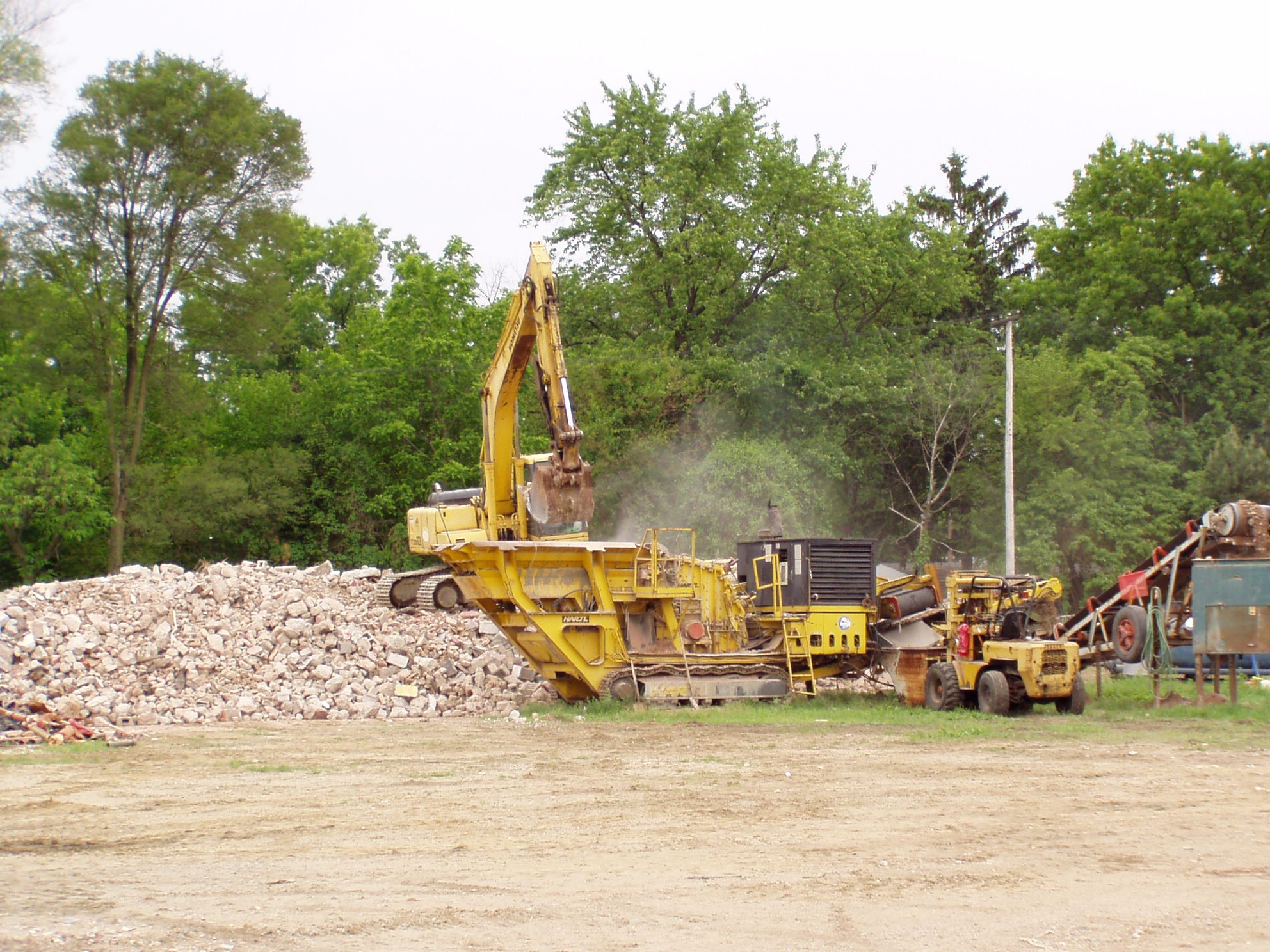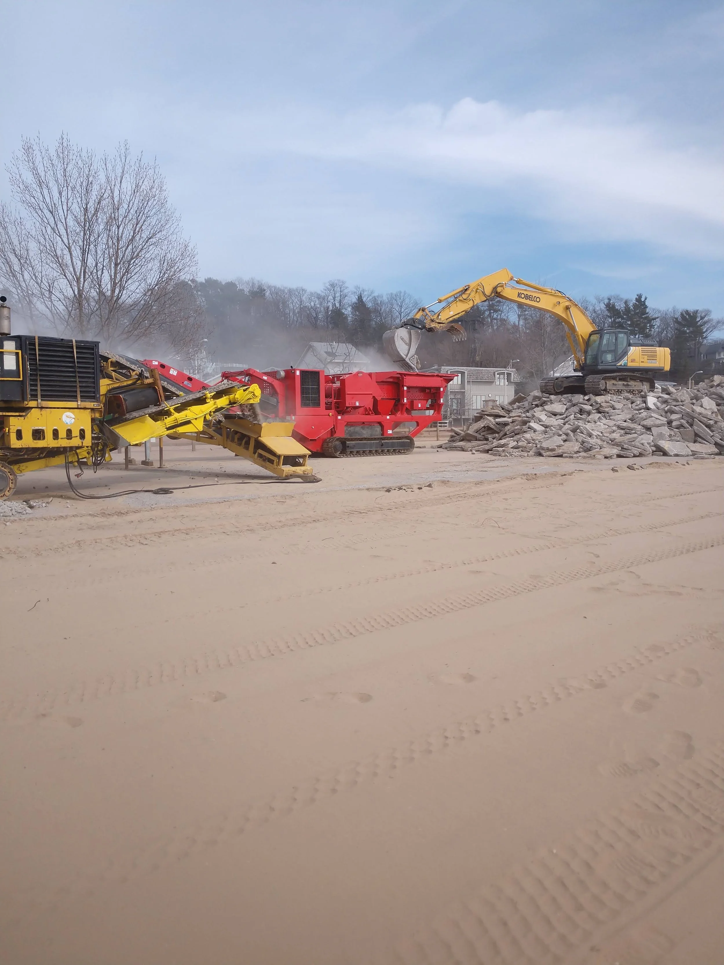 Dan Hoe Excavating, Inc. has a portable crushing plant and supporting heavy equipment to recycle, crush, pulverize, screen, and separate materials.